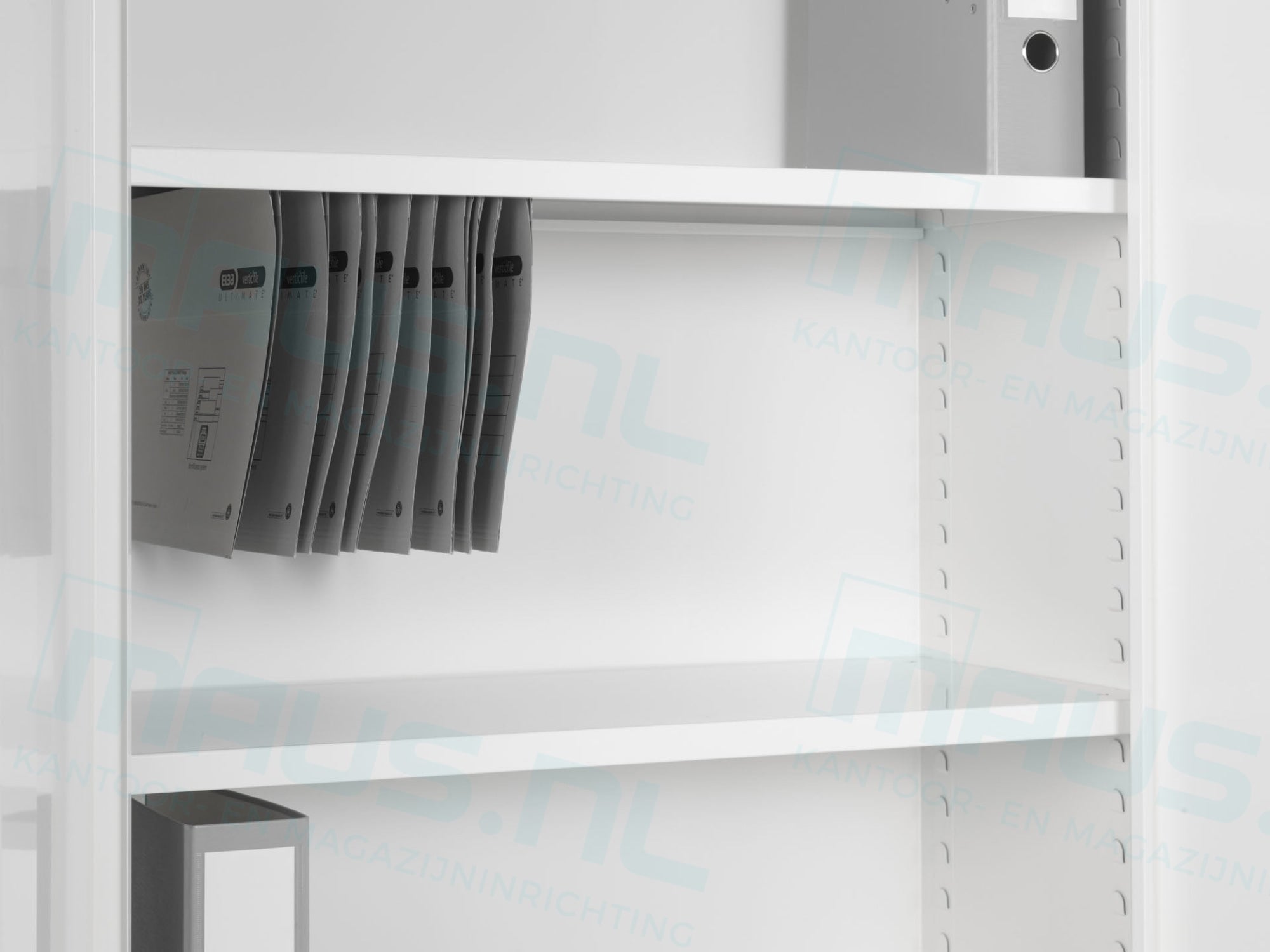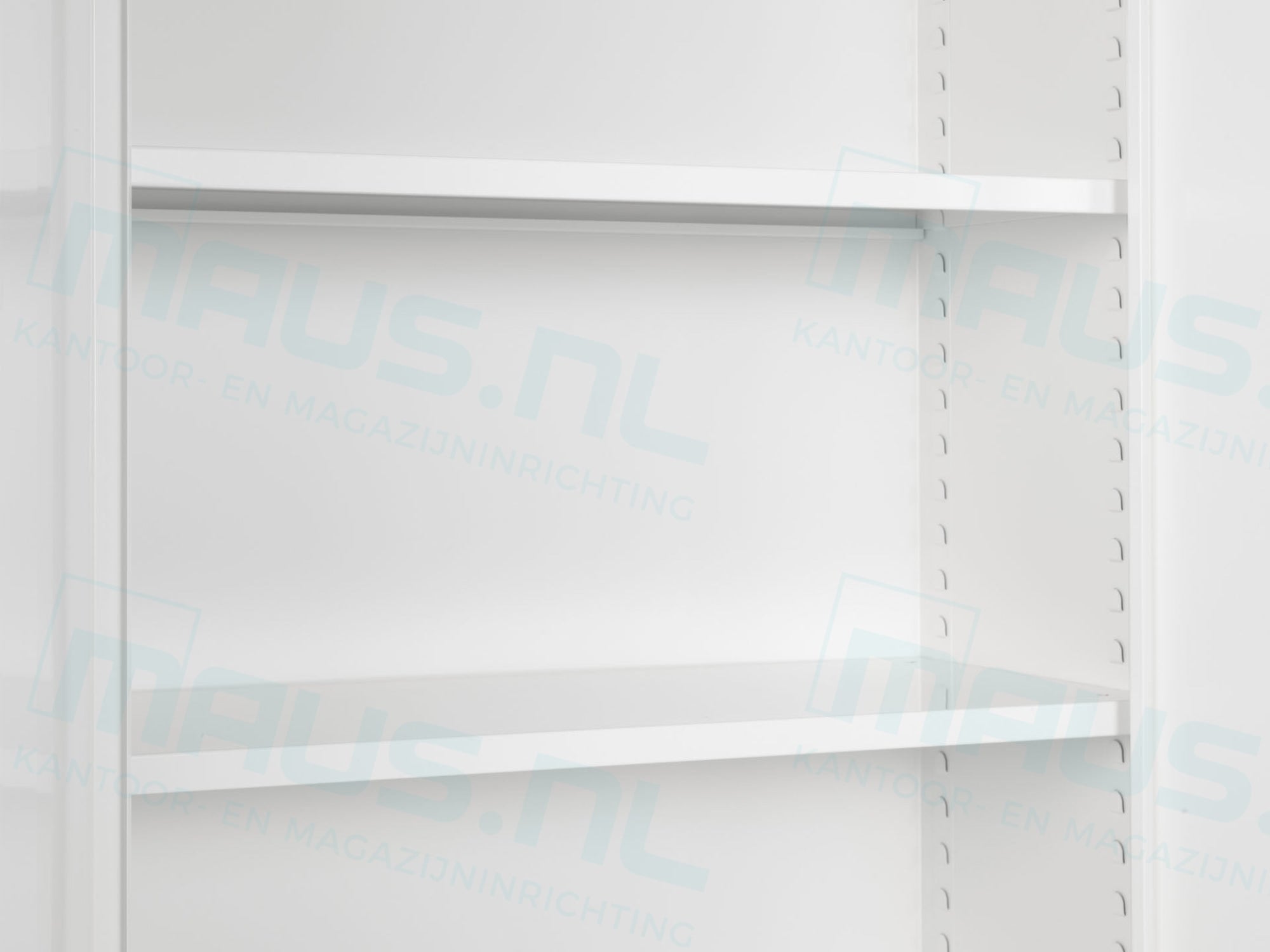 De CAB195 metalen draaideurkast wordt geleverd met 4 verstelbare legborden in dezelfde kleur als de kast. De legborden kunnen op iedere 3,5 cm worden aangepast, zodat u de ruimte optimaal kunt indelen voor uw specifieke behoeften.