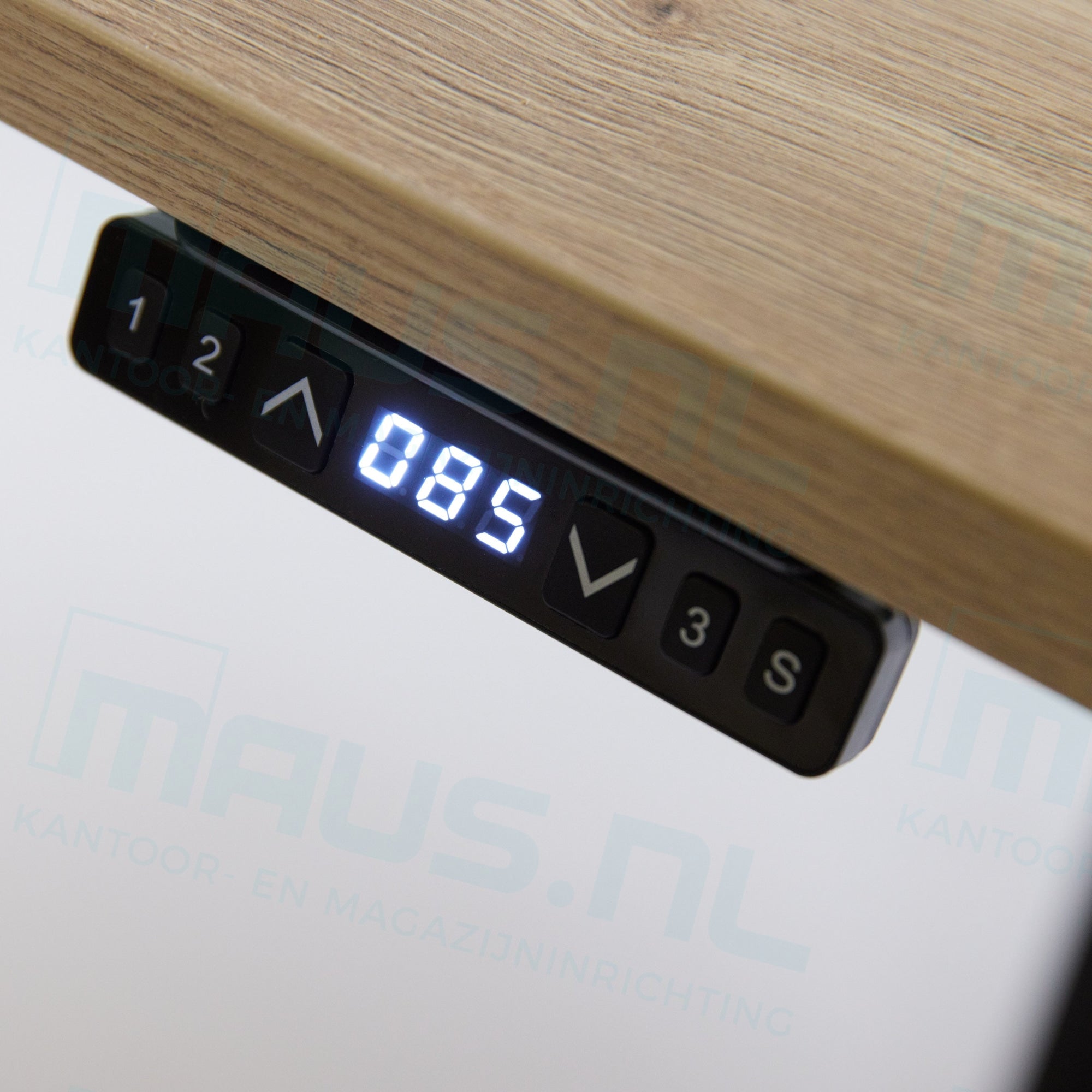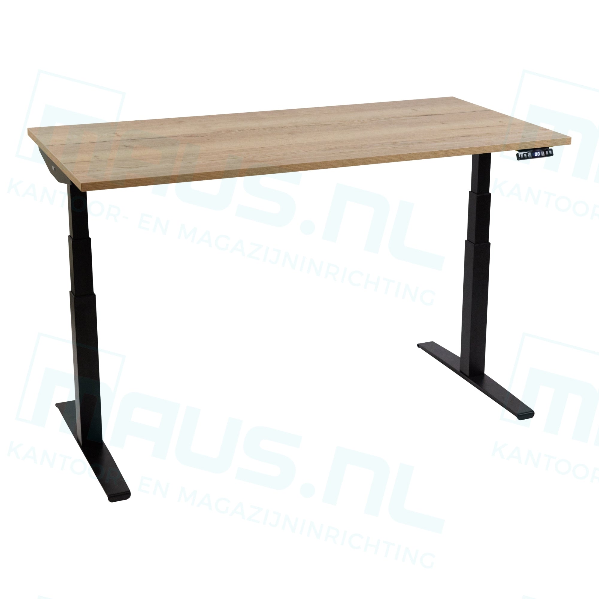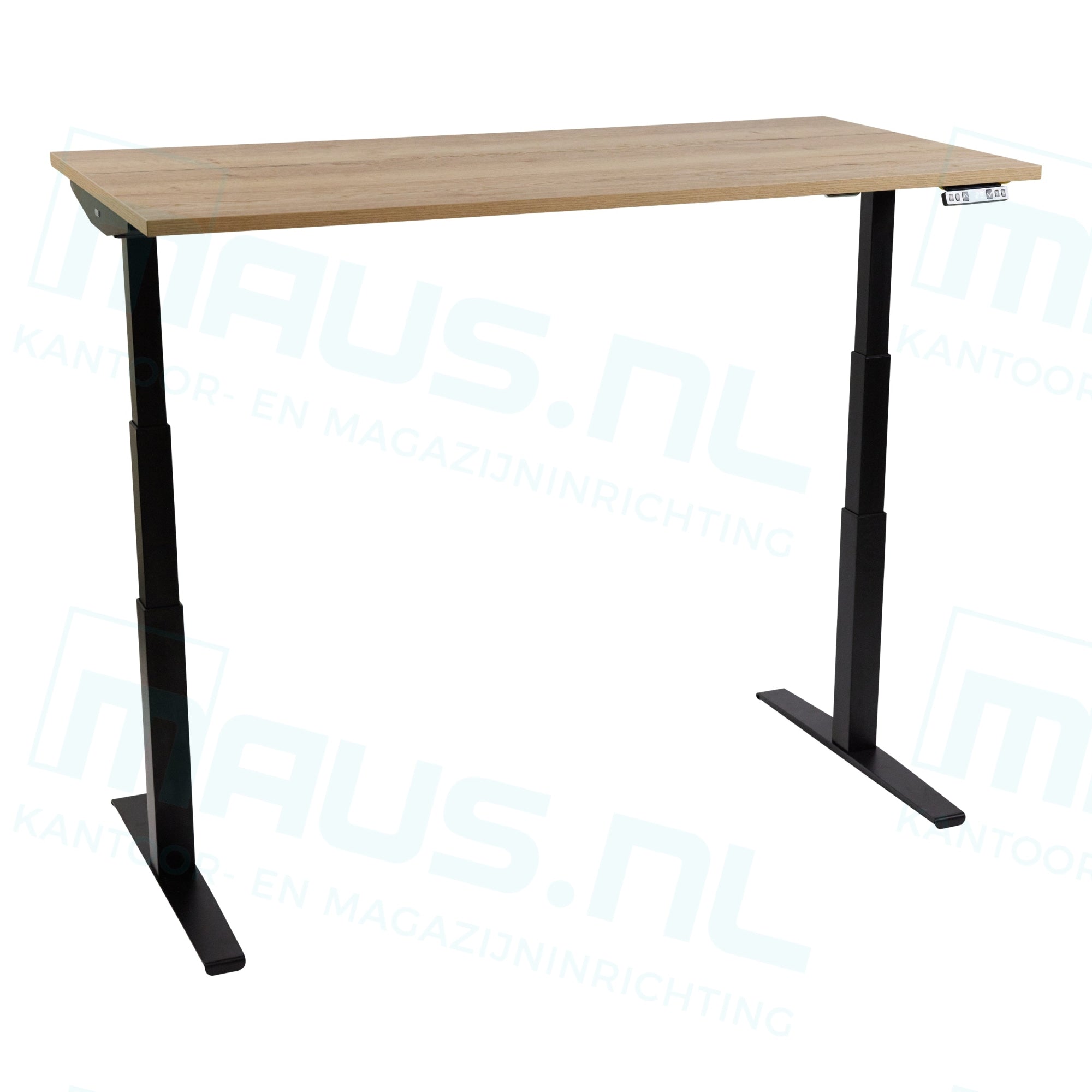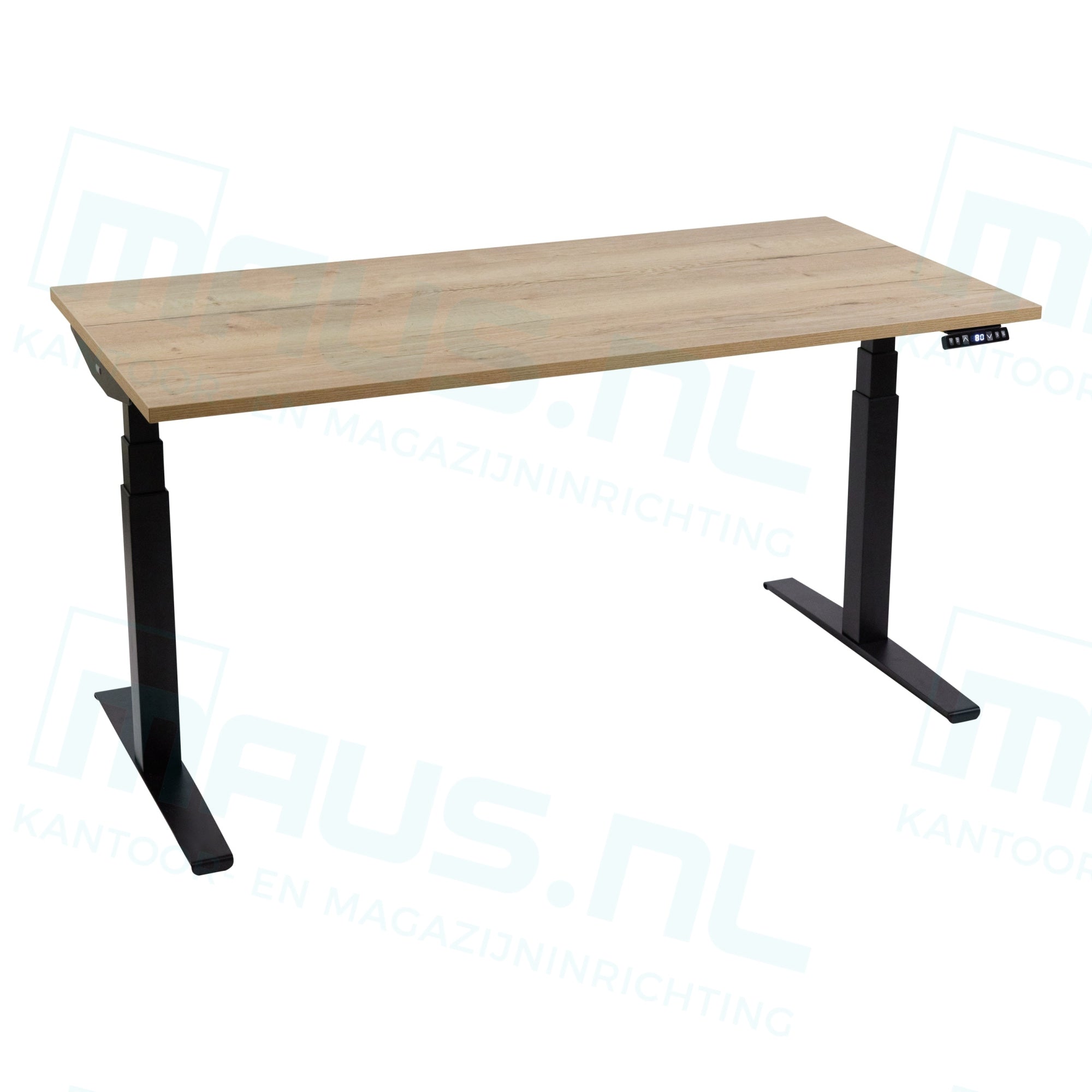 Elektrisch bureau DSQ 180x80cm met Zwarte poot en Halifax eiken blad