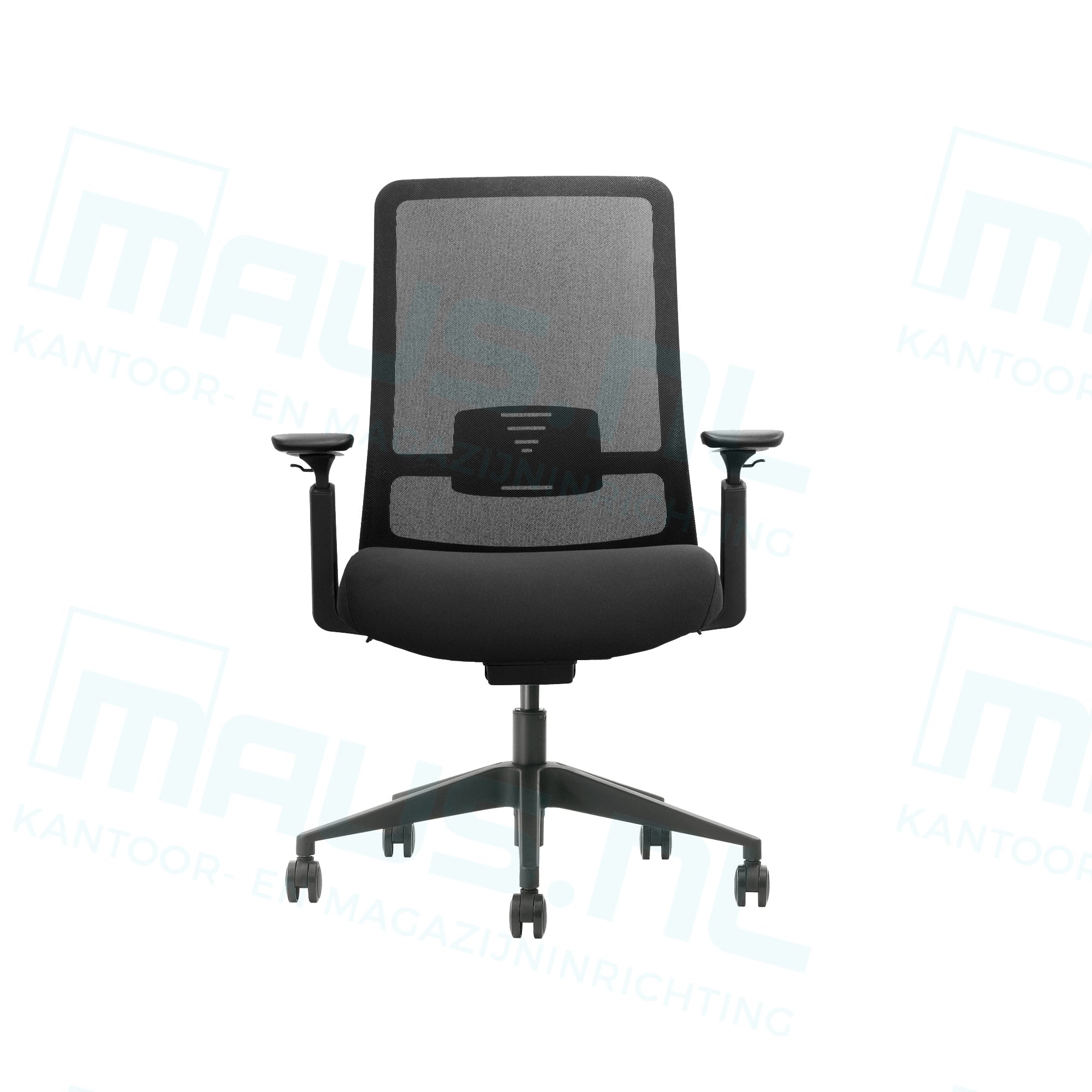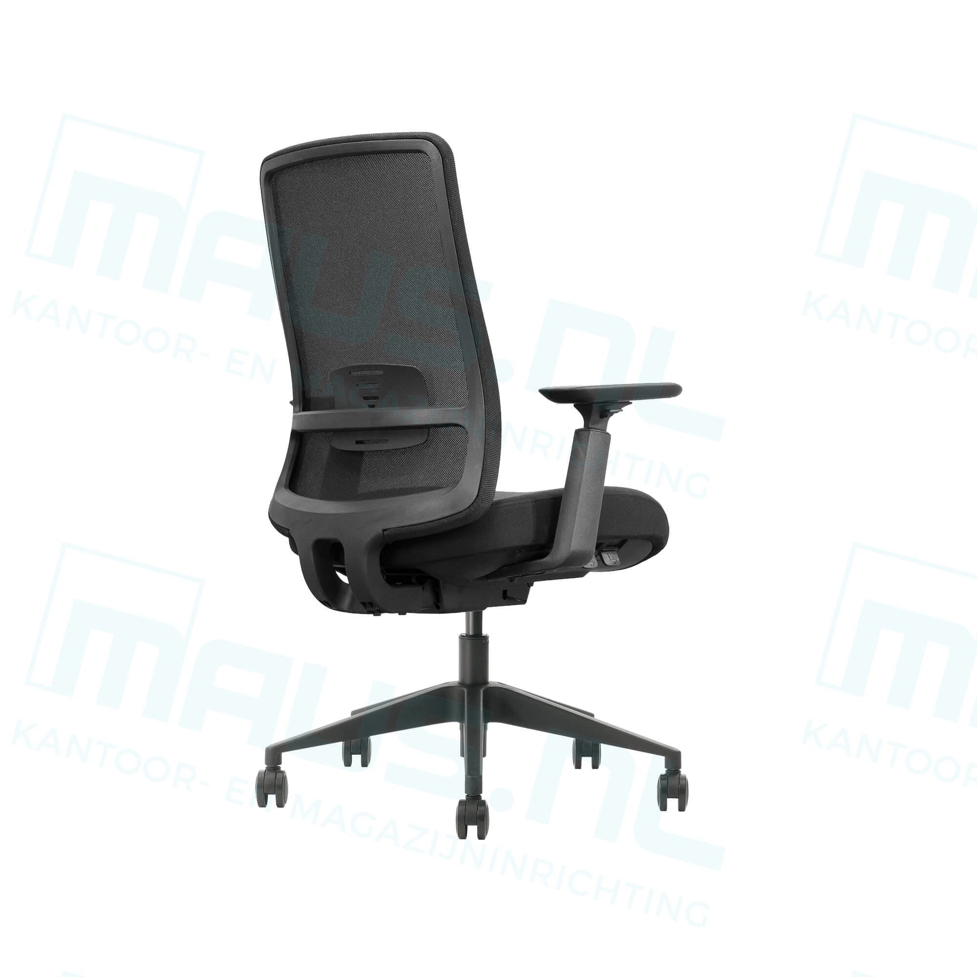De MCC-02 NEXT heeft een rugleuning van ademende netbespanning en een zitting met een luxe zwarte stoffering. Dankzij het neutrale kleurgebruik en het stijlvolle ontwerp past deze bureaustoel in elke (thuis)kantooromgeving.