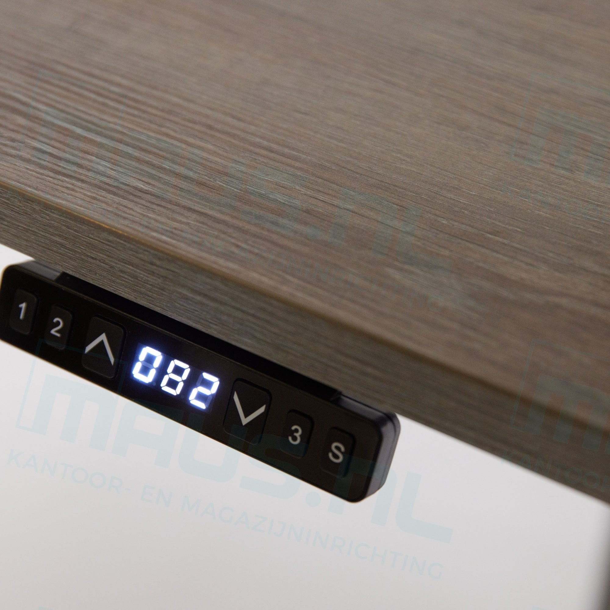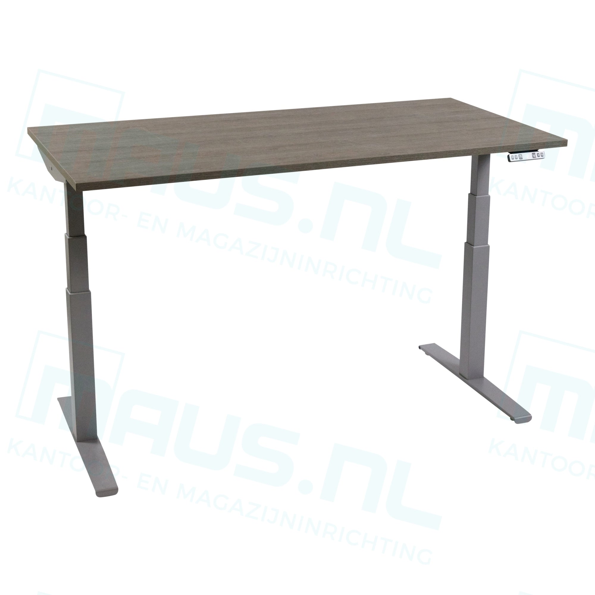 Elektrisch bureau DSQ 160x80cm met Aluminium poot en Logan eiken blad