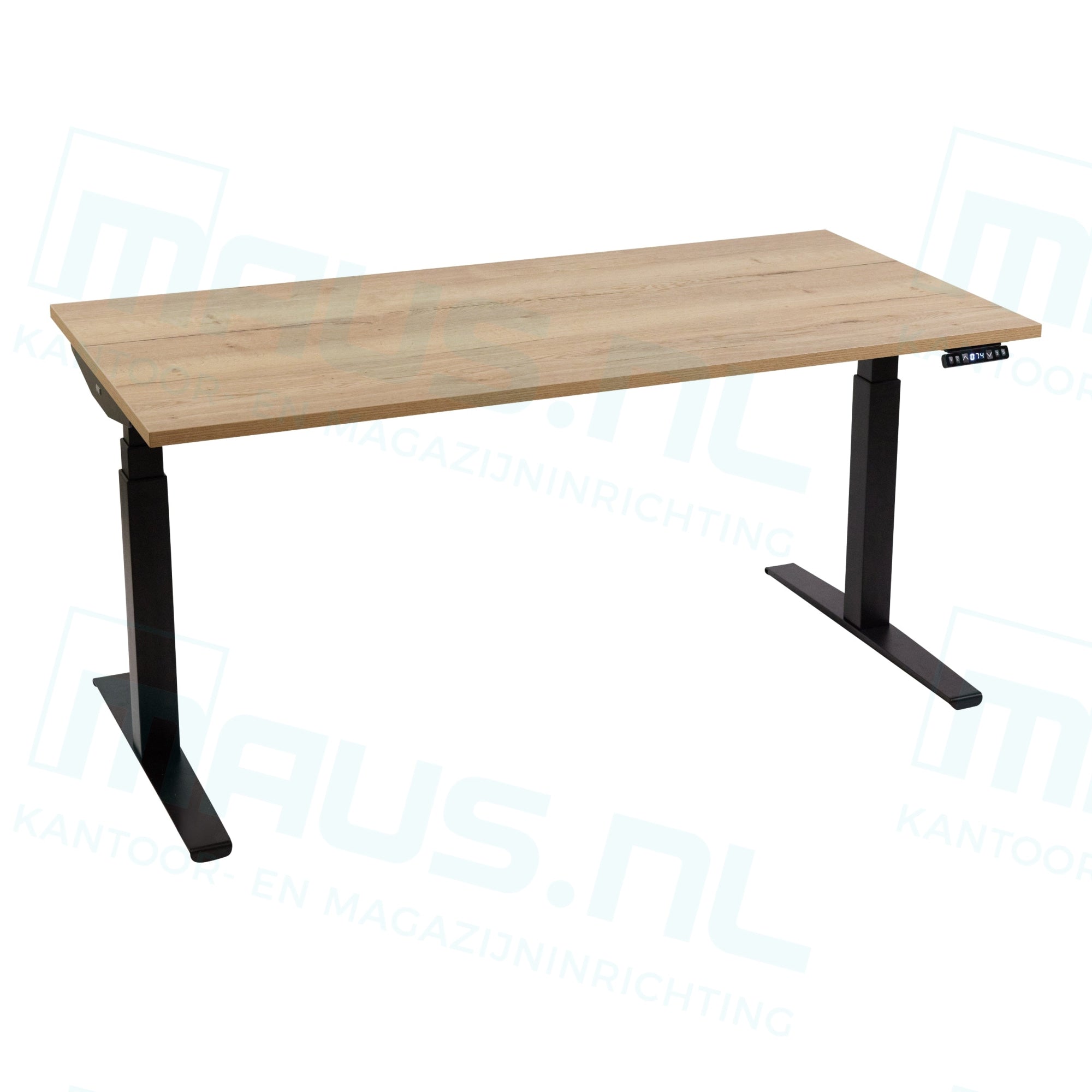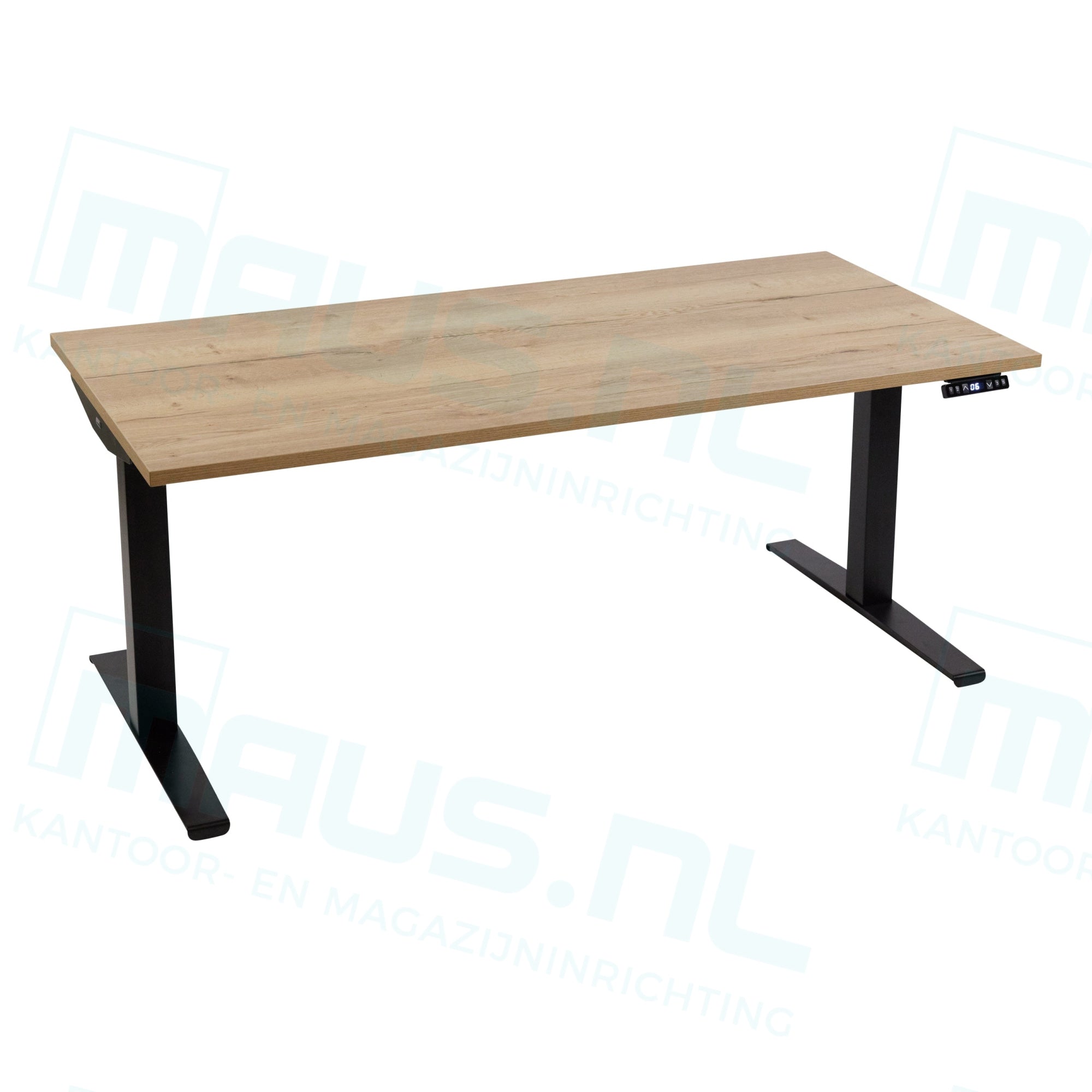 Elektrisch bureau DSQ 160x80cm met Zwarte poot en Halifax eiken blad