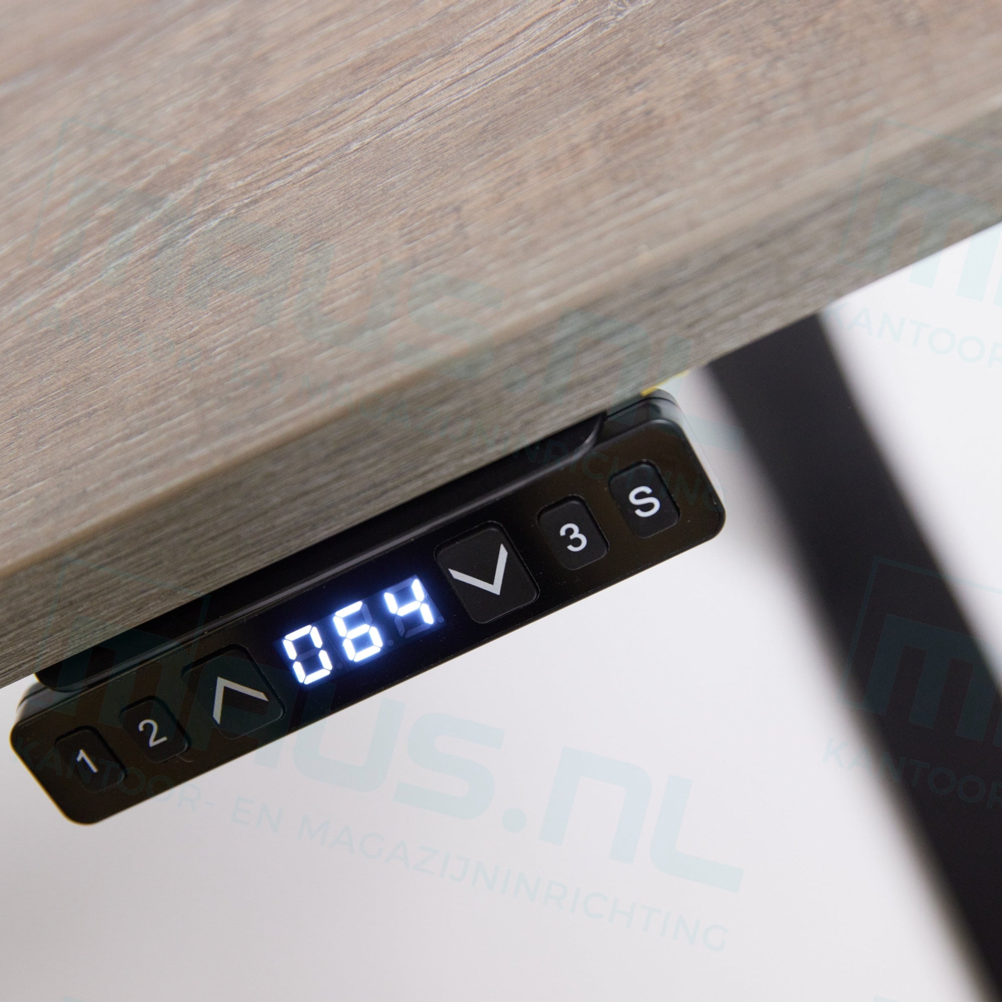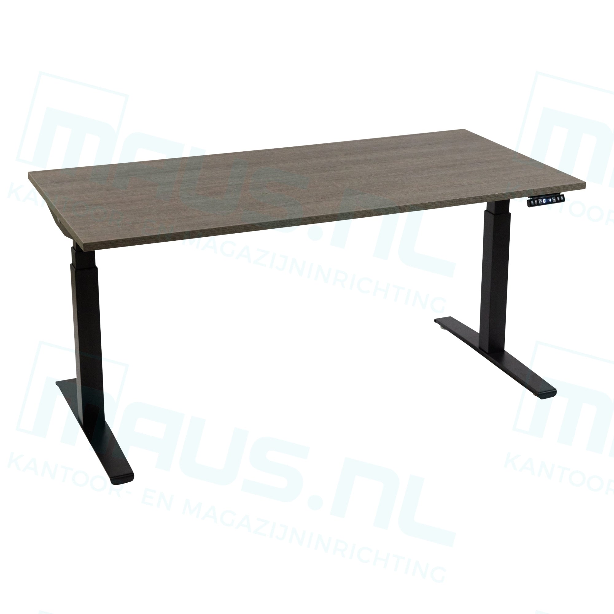 Elektrisch bureau DSQ 160x80cm met Zwarte poot en Logan eiken blad