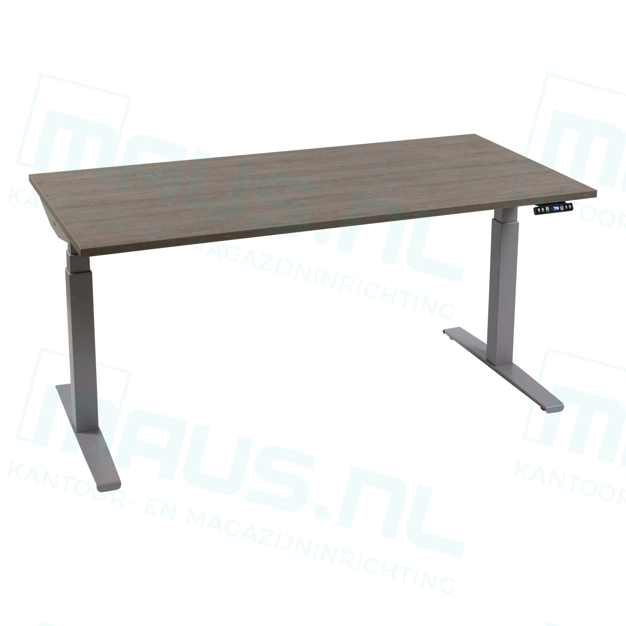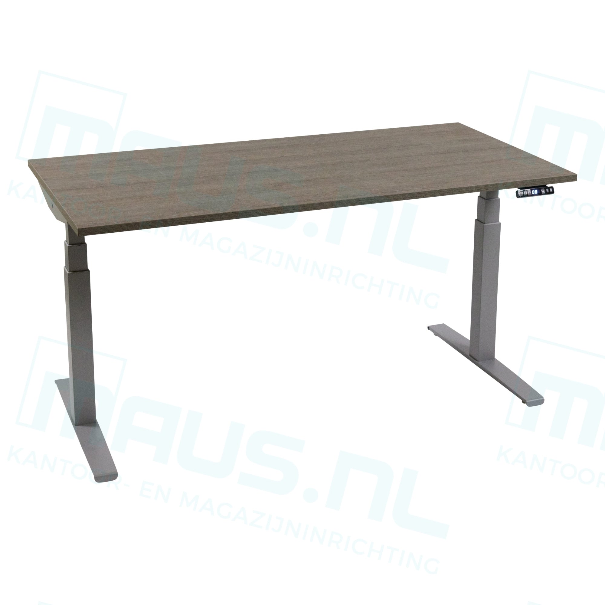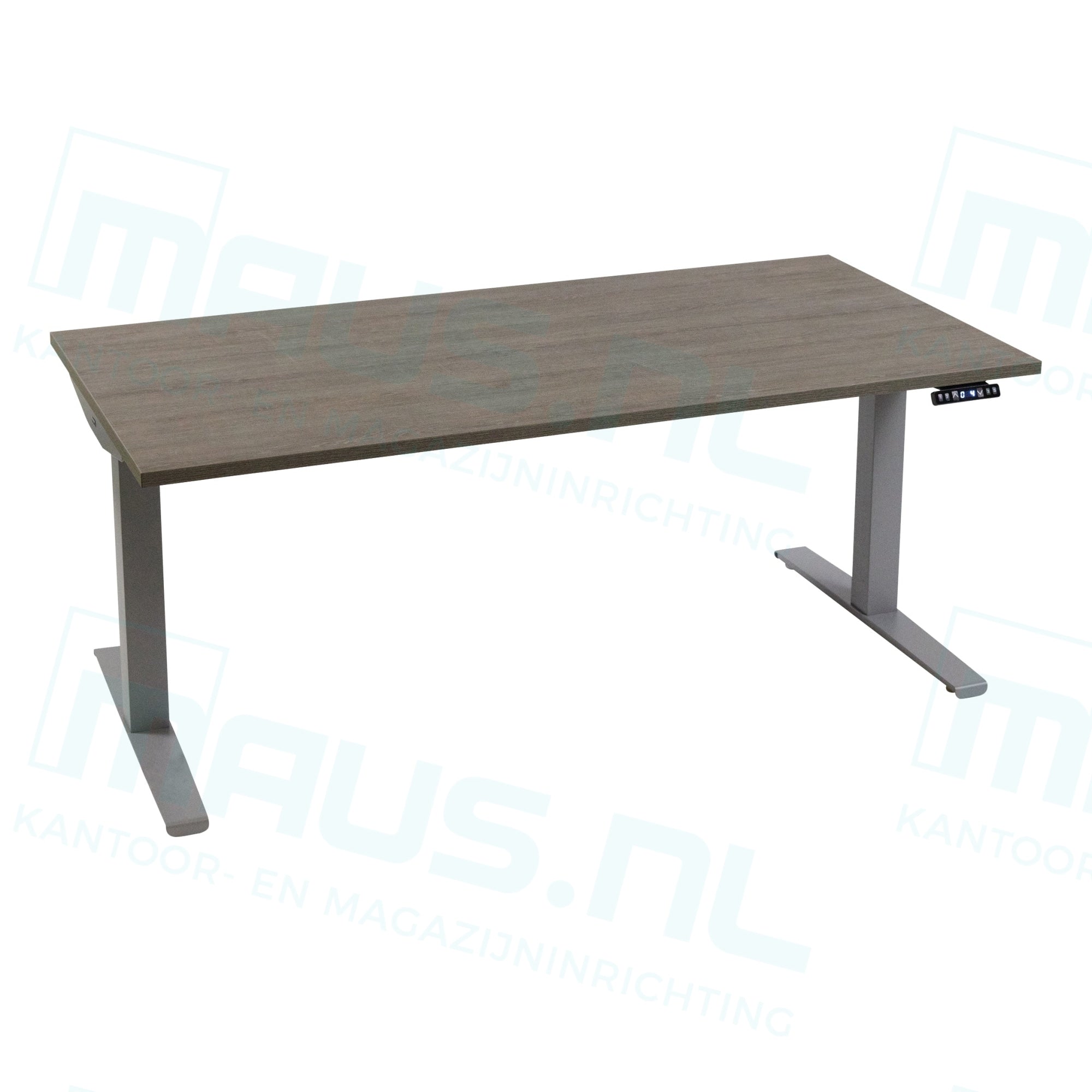 Elektrisch bureau DSQ 180x80cm met Aluminium poot en Logan eiken blad