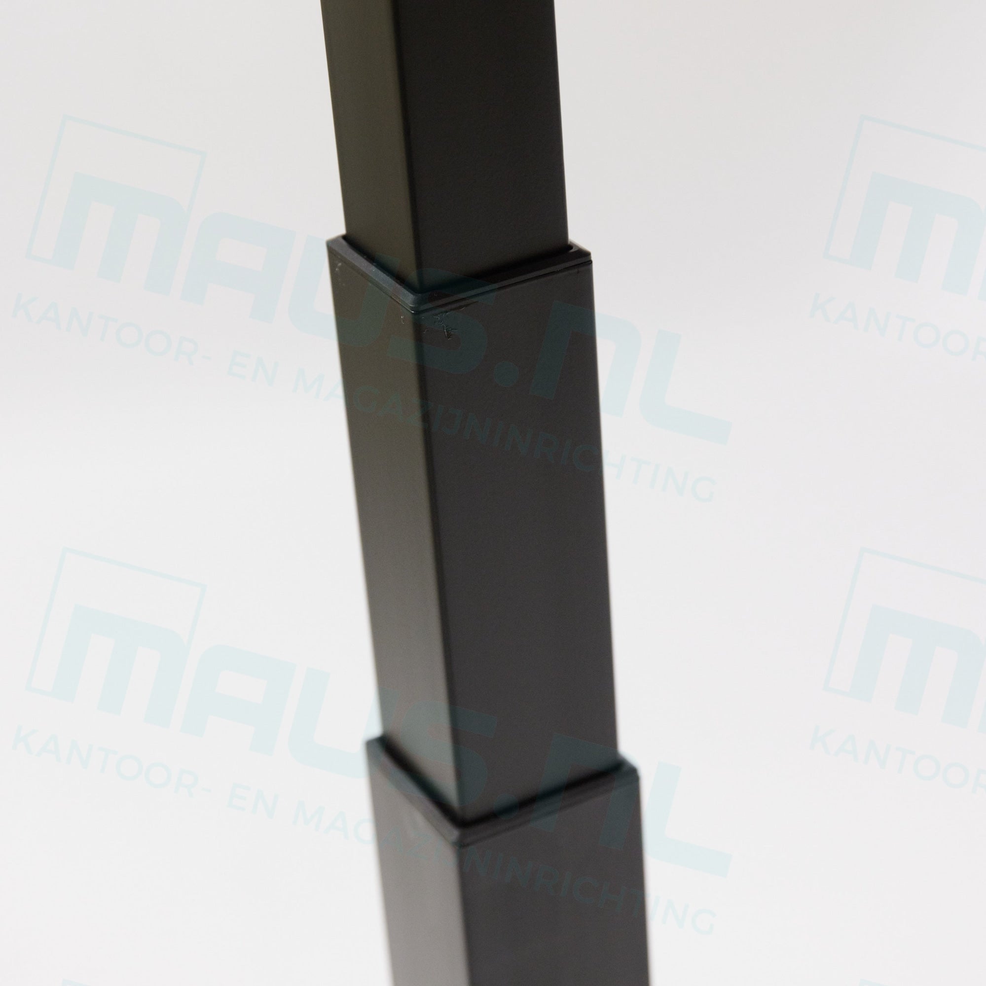 Het DSQ-bureau is uitgerust met een elektrische T-poot en een uniek dual-motorsysteem. De twee krachtige elektromotoren zorgen voor een soepele en stille verstelling. Bovendien is het systeem voorzien van een anti-collision functie: de beweging stopt automatisch als een obstakel wordt gedetecteerd. Het telescopische frame is belastbaar tot 80 kilo, wat zorgt voor optimale stabiliteit en duurzaamheid.