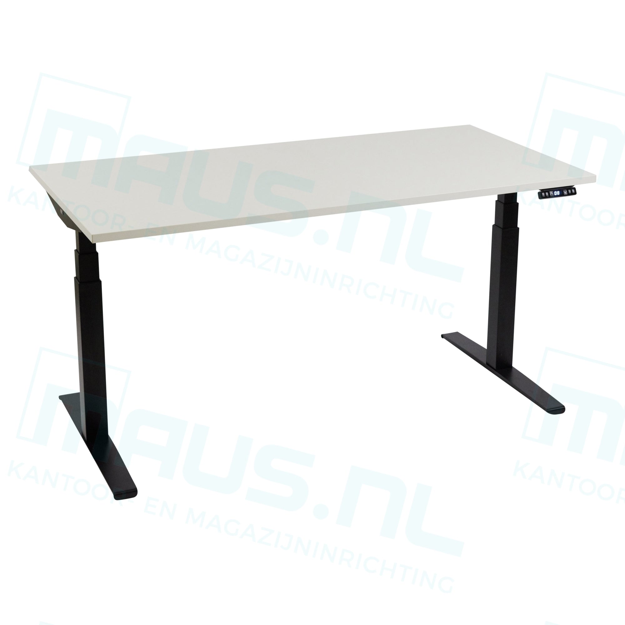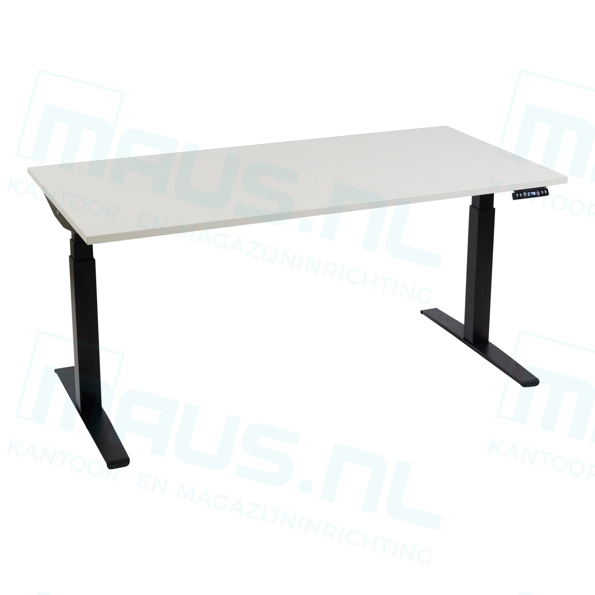 Elektrisch bureau DSQ 180x80cm met Zwarte poot en Wit blad
