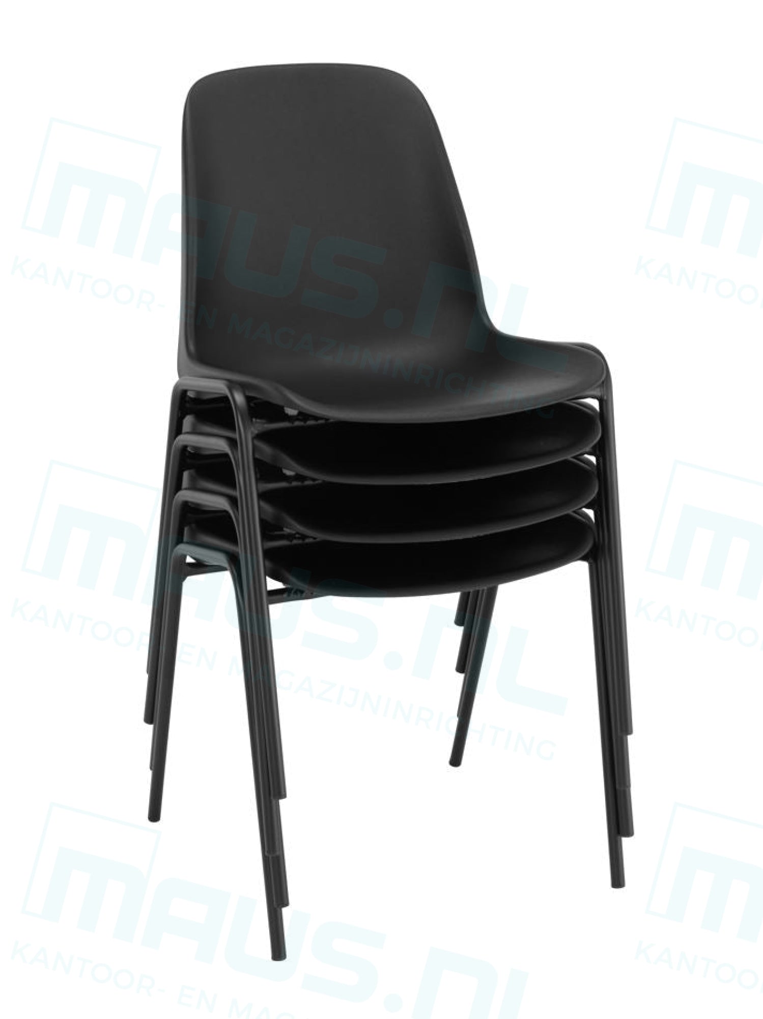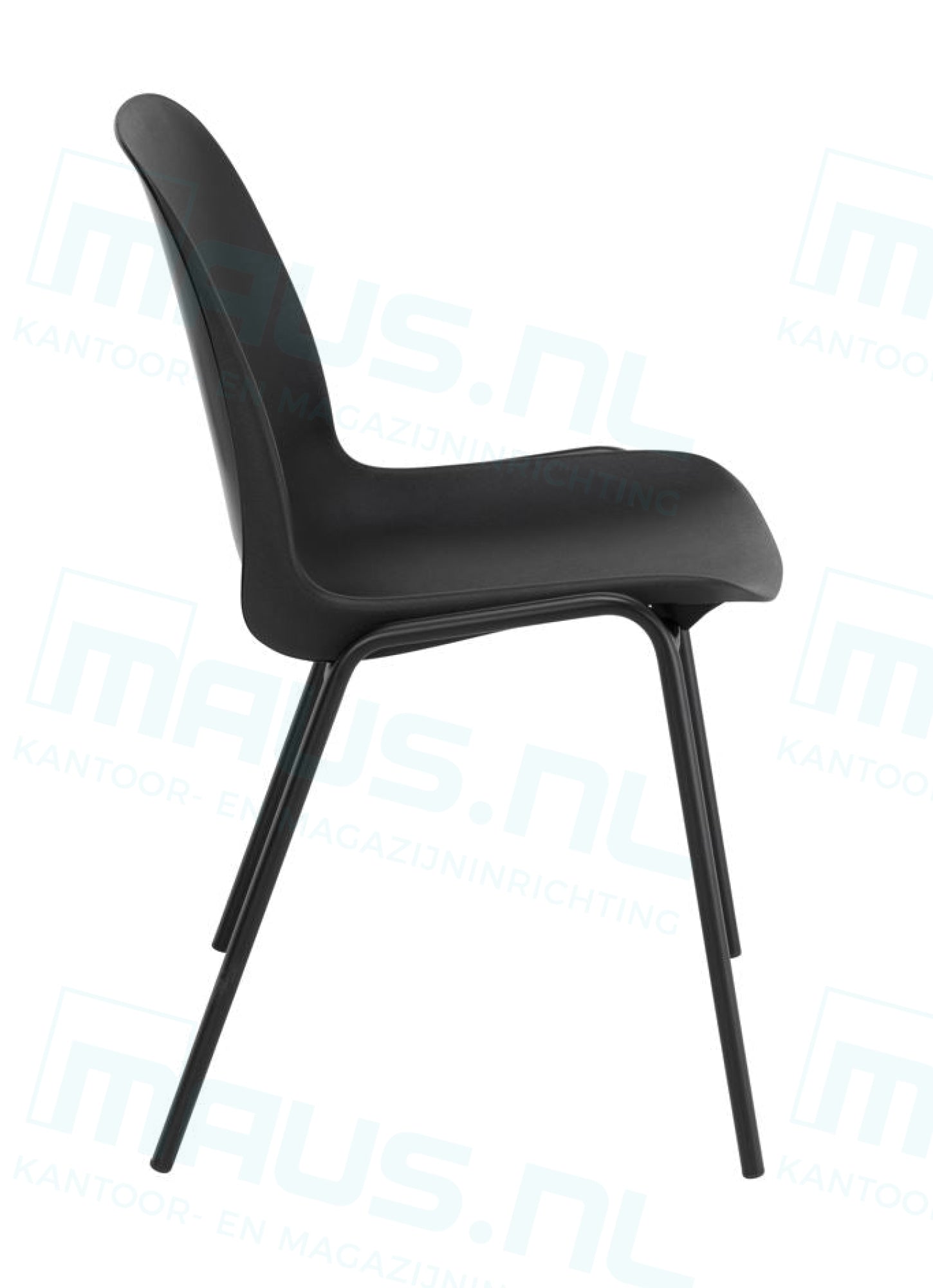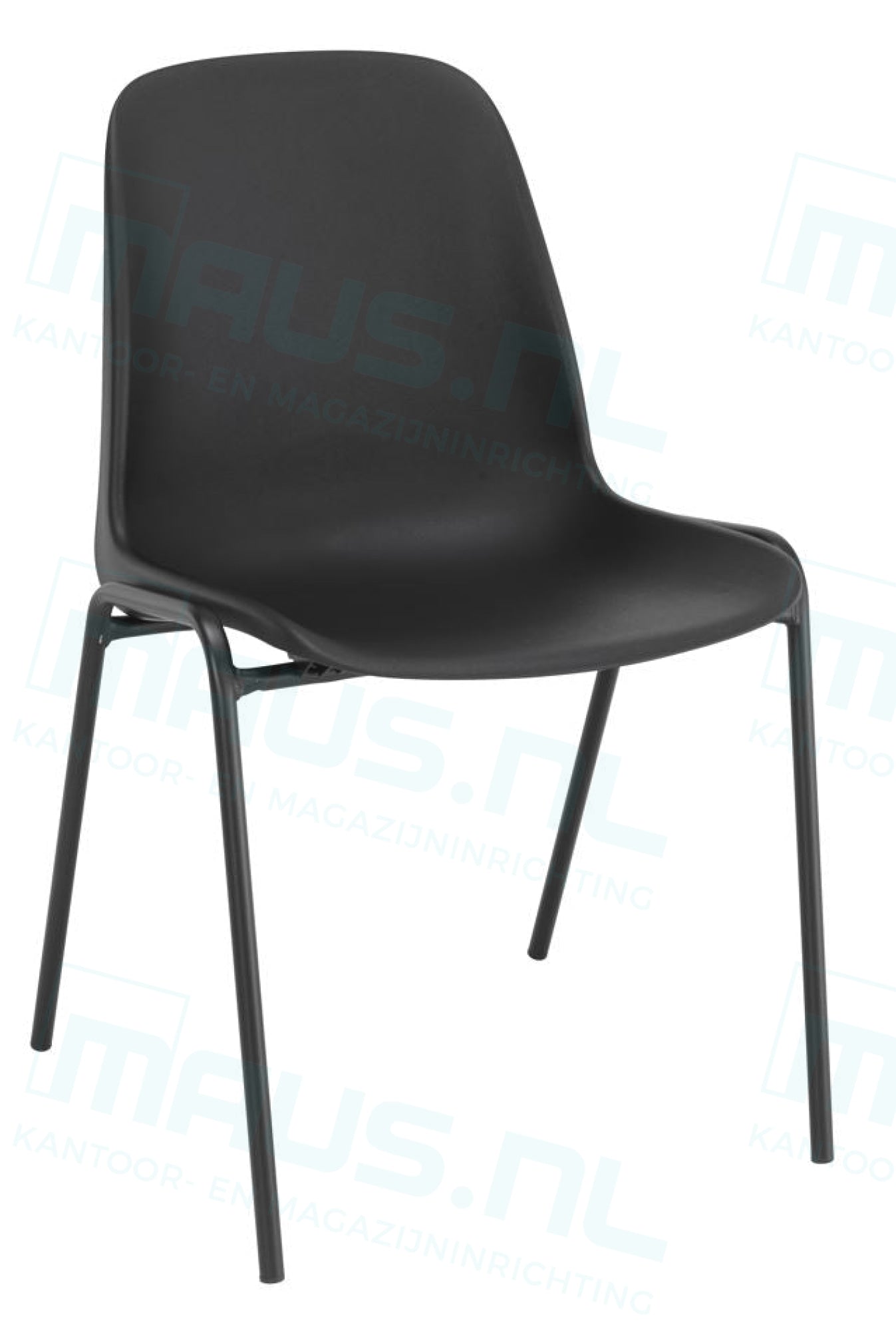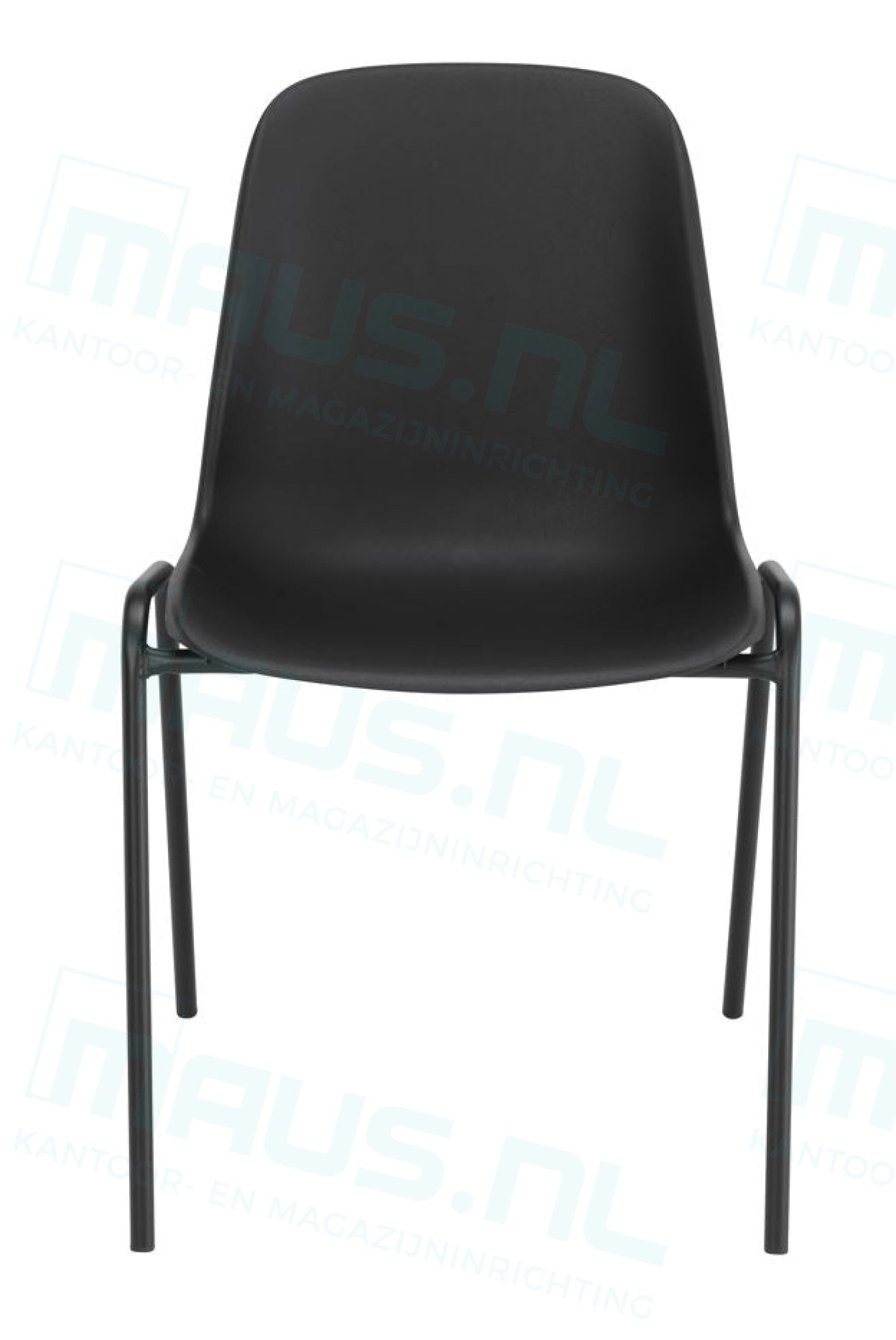 De stoel is voorzien van een stevig frame in de kleur zwart, gecombineerd met een zitting en rugleuning van duurzaam kunststof, eveneens in het zwart. Dit tijdloze ontwerp past moeiteloos in elke omgeving.
