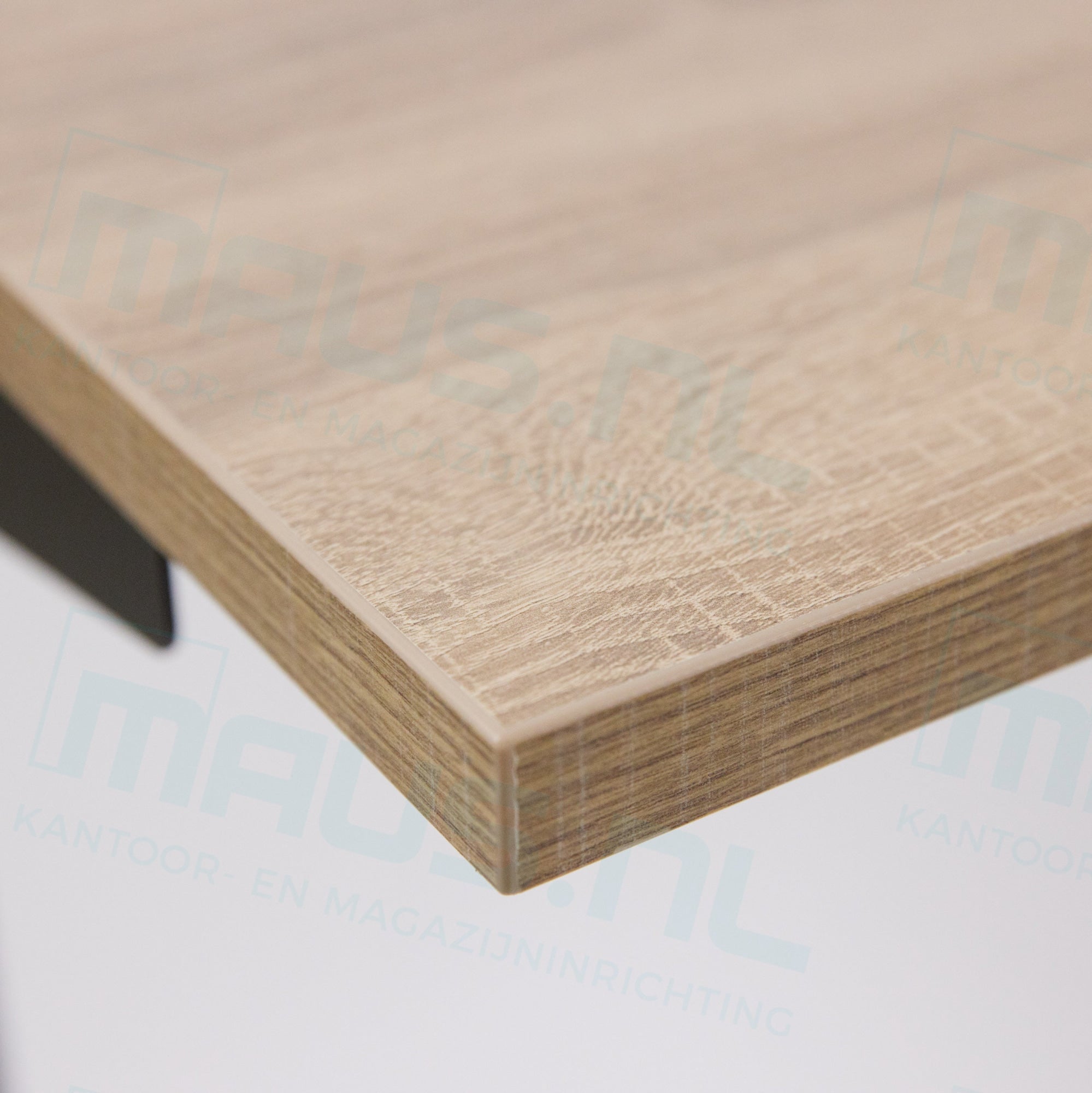 De bureaubladen zijn 2,5 cm dik en afgewerkt met een stevige stootrand in bijpassende kleur, wat zorgt voor een langdurige, professionele uitstraling.