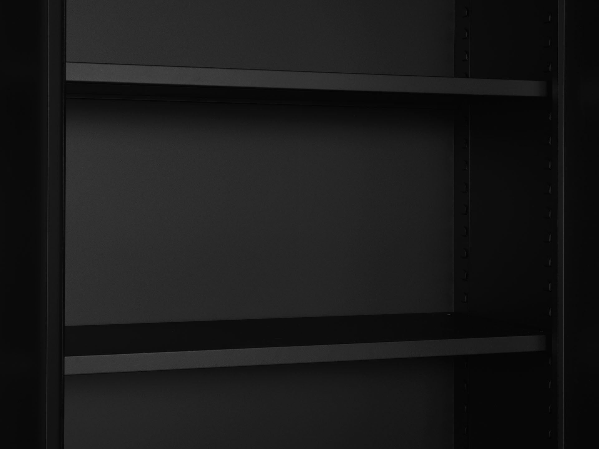 + Extra stevig gelaste constructie + Afsluitbaar middels cilinderslot + Legborden ook geschikt voor laterale hangmappen + Legborden verstelbaar