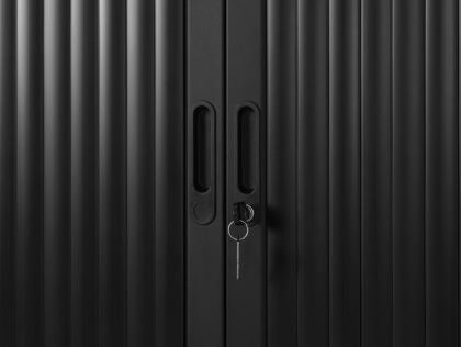 De roldeurkast CAB105-100 is voorzien van een volledig gelaste stalen constructie, wat zorgt voor stabiliteit en een lange levensduur. De roldeuren zijn gemaakt van vlamdovend PVC voor extra veiligheid. De stalen eindlamel is uitgerust met handige geïntegreerde handgrepen en een cilinderslot waarmee u belangrijke documenten en kantoorbenodigdheden veilig kunt opbergen. Bij de kast worden 2 sleutels meegeleverd.