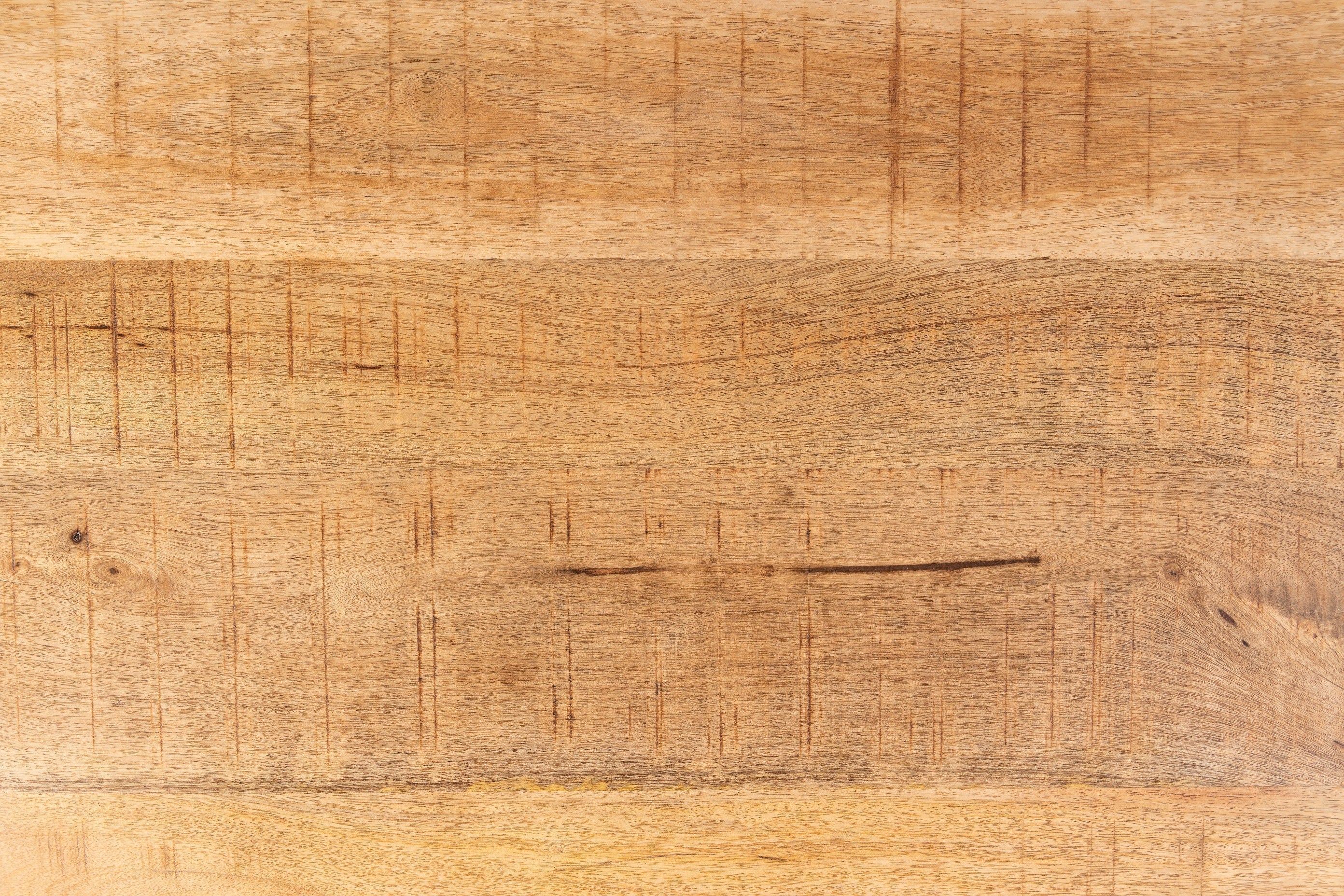 Het rechthoekige tafelblad is vervaardigd uit massief mangohout en heeft een extra stevige dikte van 3 cm bij 3 cm. Verkrijgbaar in: